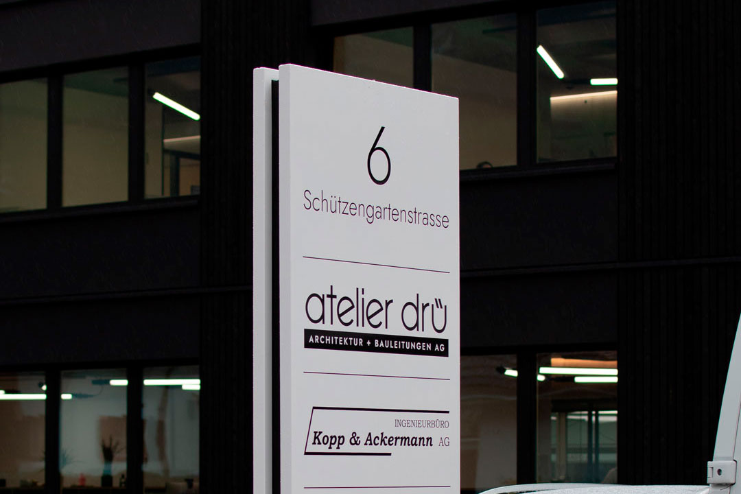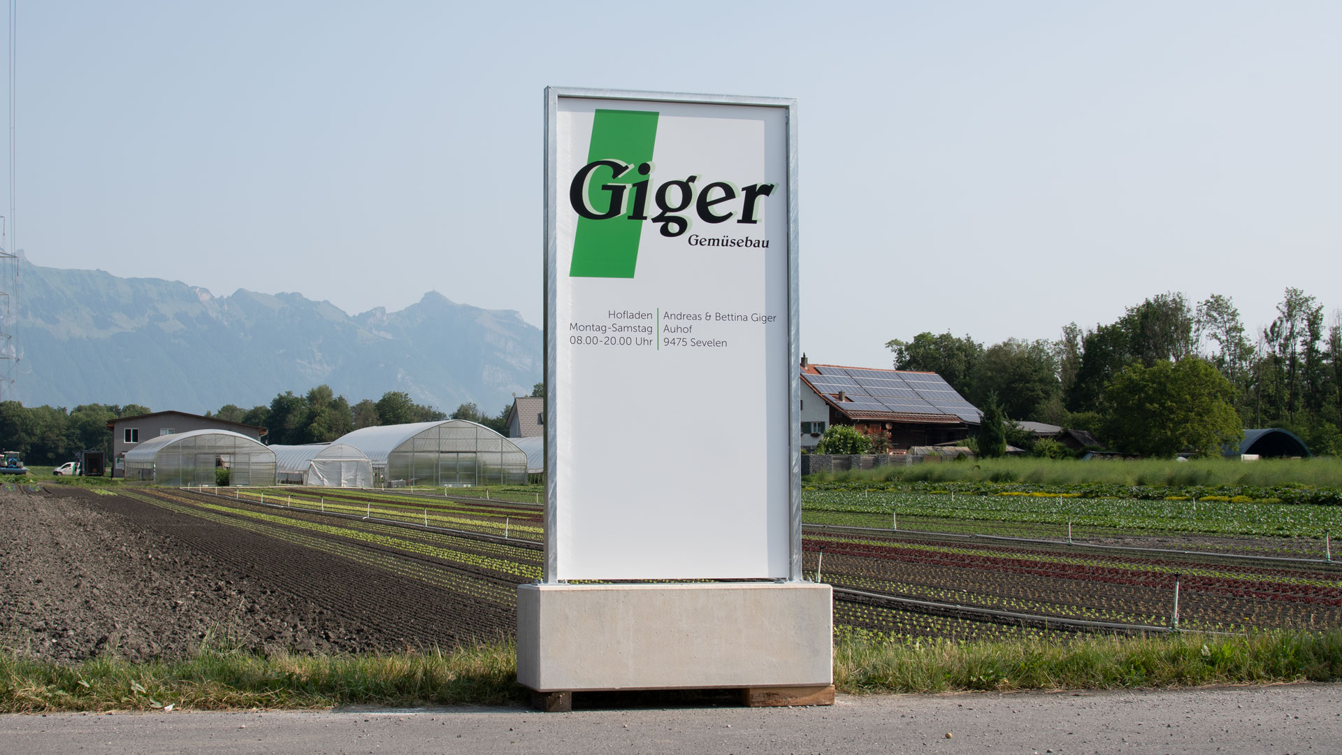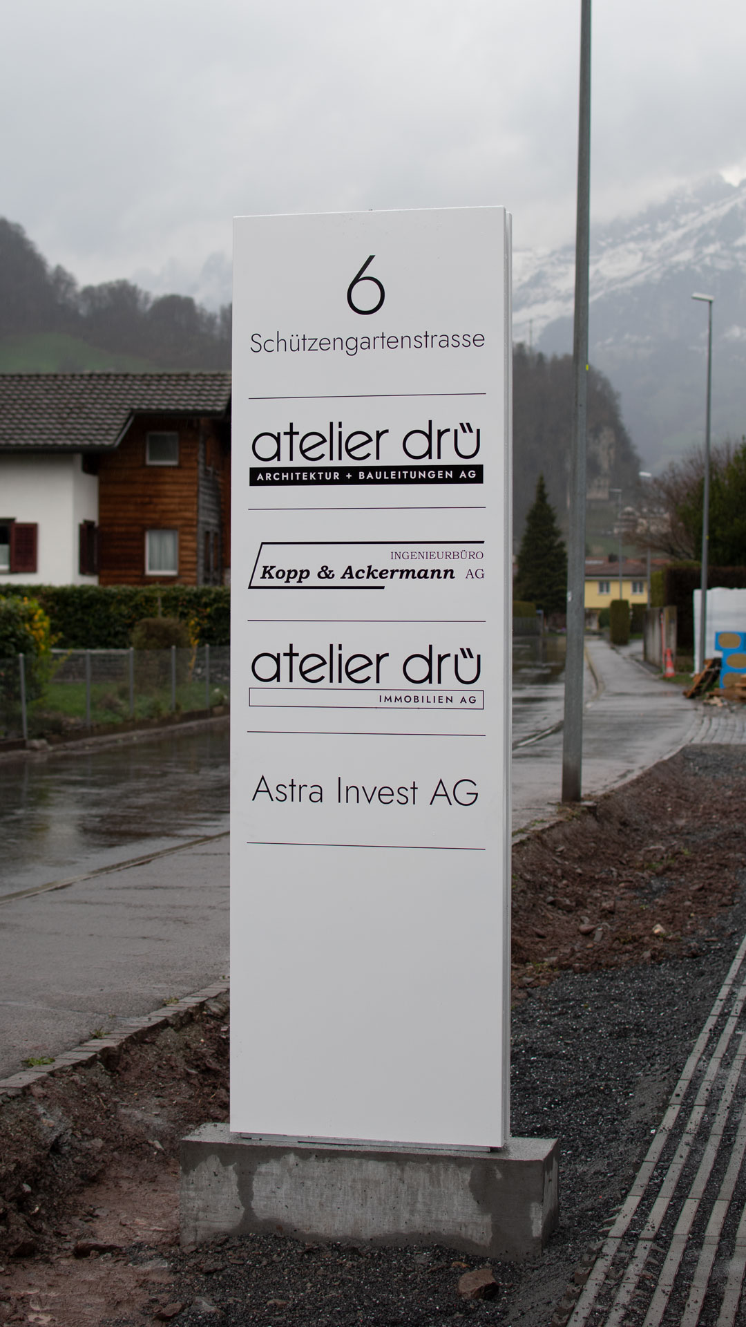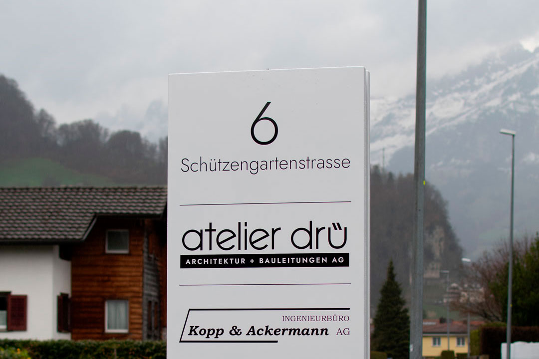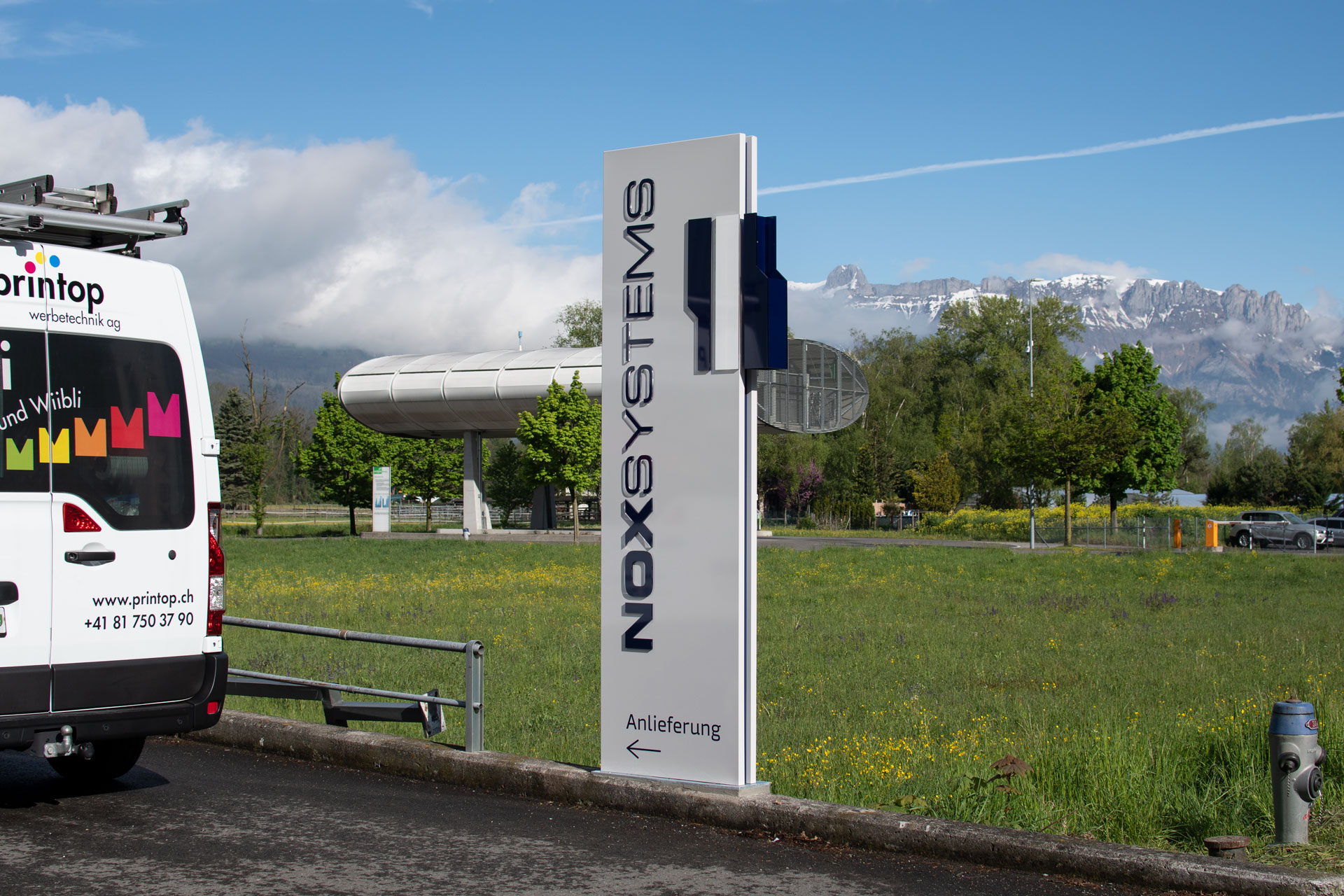 Für den neuen Standort in Flums, wo auch sonst, lieferten und montierten wir den neuen Pylon. Eine schlichte und elegante Umsetzung.