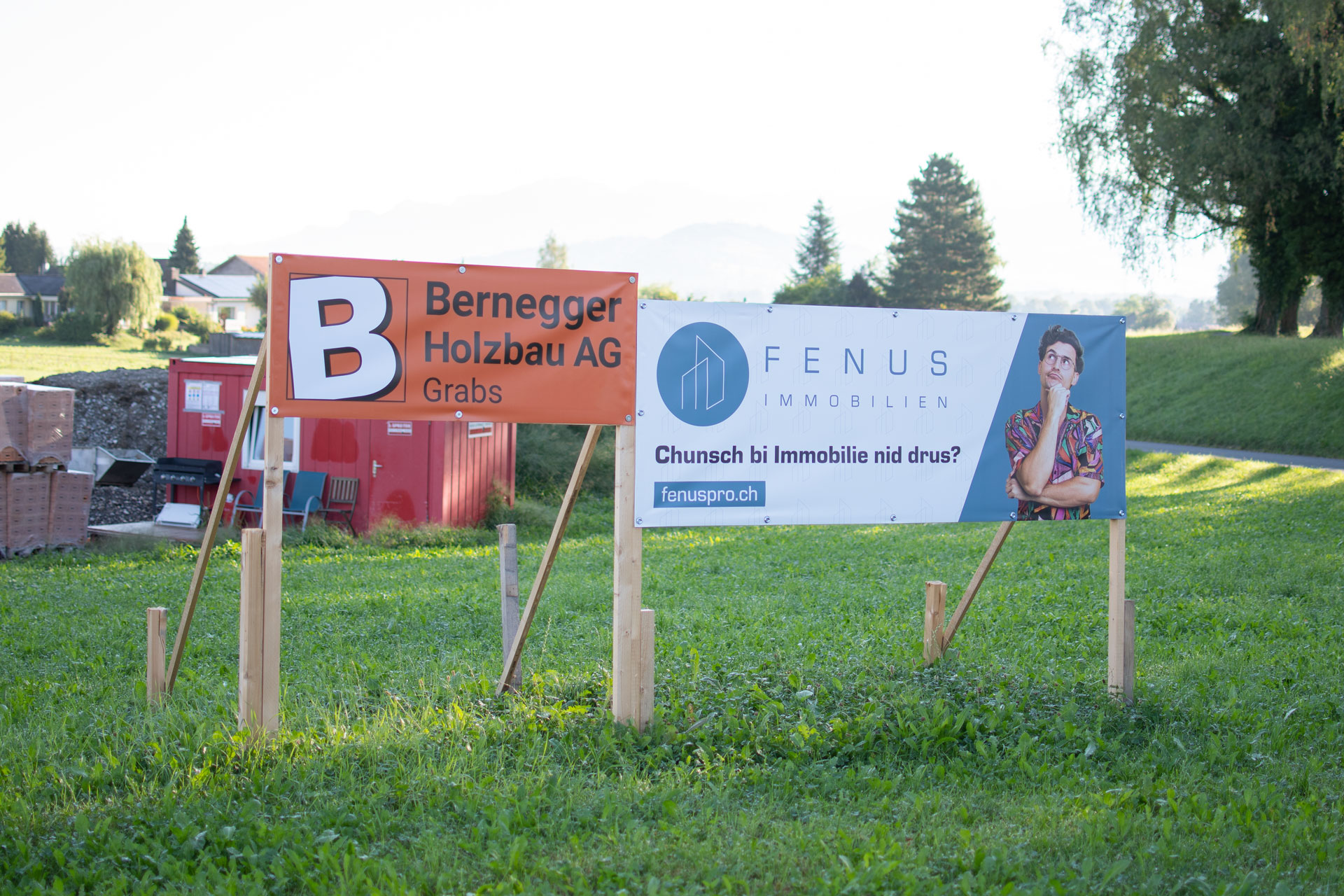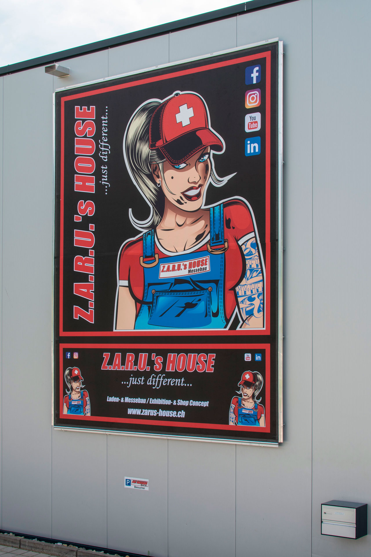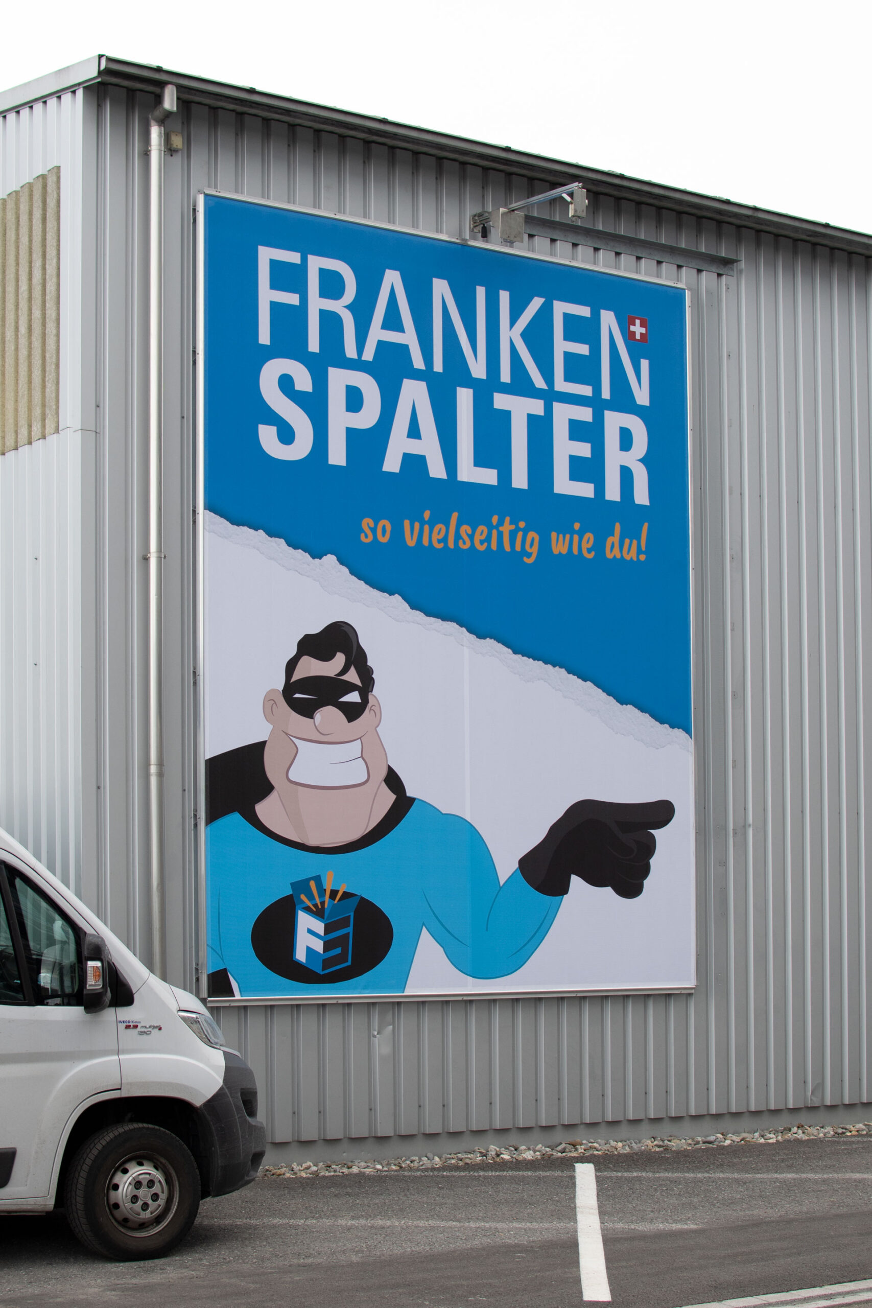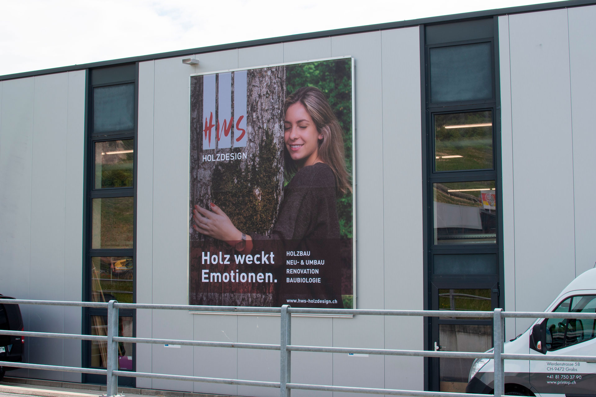Mit dem neuen Megaposter macht die fleischlose Alternative auf sich Aufmerksam. Montiert auf einen Stahlseilrahmen trotzt die Netzblache jedem Wind.